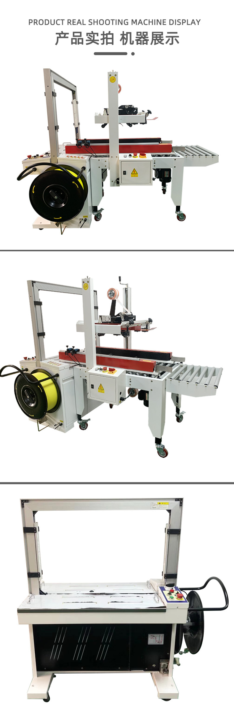 PRODUCT CENTER封箱機(jī),也稱(chēng)為Case sealer machine,主要用于紙箱的封箱包裝。它們不僅適用于單機(jī)作業(yè),也可以與流水線(xiàn)配套使用,是包裝流水線(xiàn)作業(yè)中不可或缺的設(shè)備。封箱機(jī)的功能包括自動(dòng)折疊、粘合和封口紙箱,通過(guò)先進(jìn)的感應(yīng)和控制技術(shù),能夠自動(dòng)檢測(cè)和調(diào)整紙箱尺寸,按照設(shè)計(jì)要求進(jìn)行折疊和封口操作,大大提高了包裝的效率和一致性,減少了人工操作的錯(cuò)誤和勞動(dòng)強(qiáng)度。